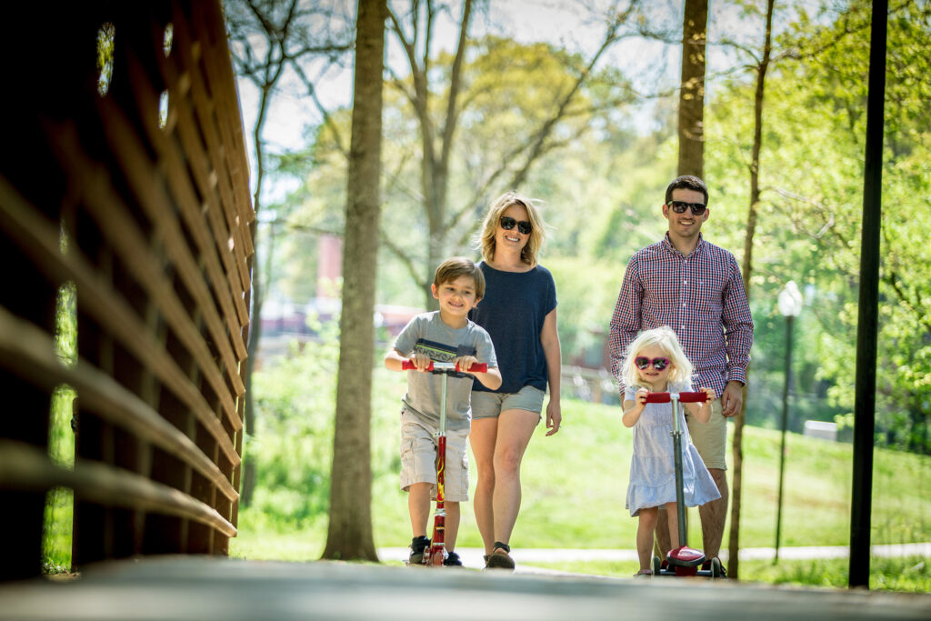 Capture that perfect family holiday photo on top of Cauble Park’s wooden bridge.